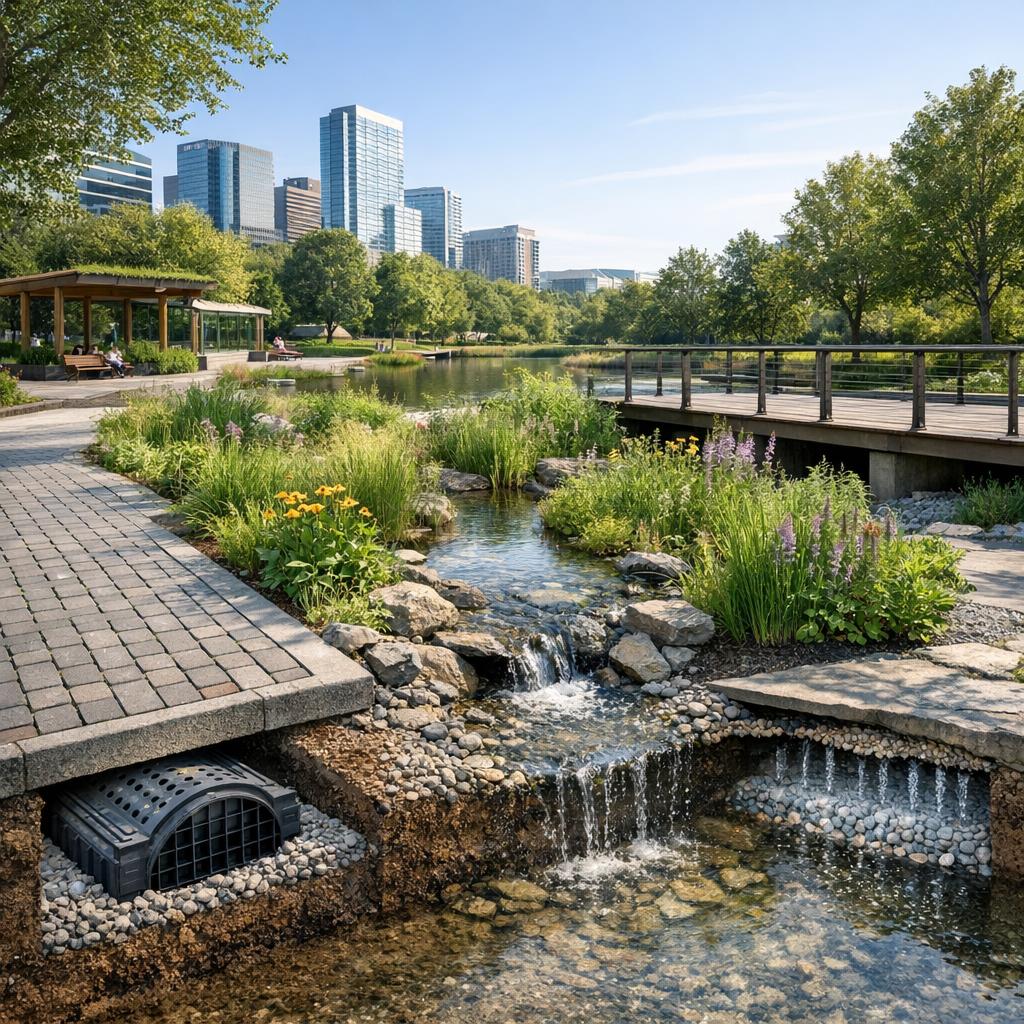 Versickerung ist ein zentraler Baustein grüner Infrastruktur in Städten. Sie ergänzt andere Maßnahmen wie Dachbegrünung, Regenwassernutzung und Grünflächenplanung. Gemeinsam bilden sie ein nachhaltiges Wassermanagementsystem.